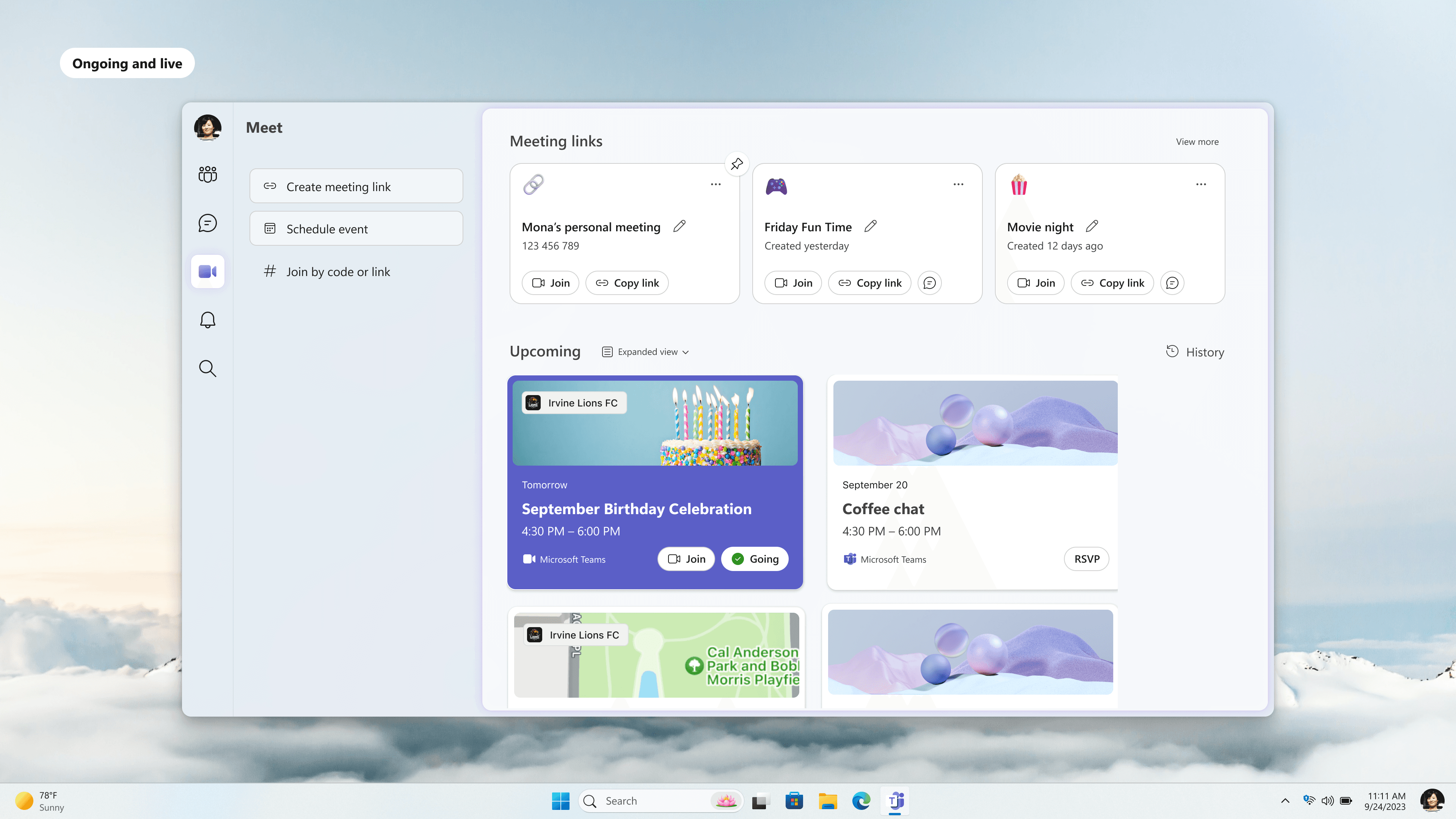 I collaborated with another designer to ideate and ship the "Meet app", a one stop shop within Teams Free for users to start, join, schedule and share meetings effortlessly. It addressed the two ways to meet in Teams: ad hoc and scheduled and combines them in an accessible app.